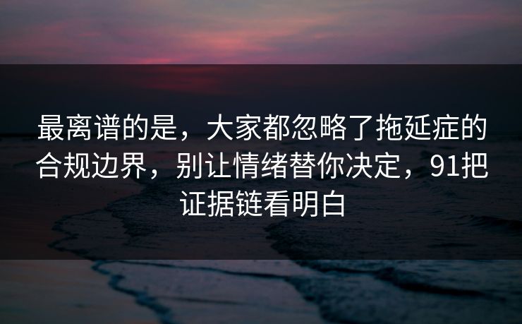最离谱的是,大家都忽略了拖延症的合规边界,别让情绪替你决定,91把证据链看明白