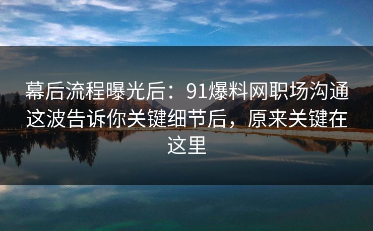 幕后流程曝光后:91爆料网职场沟通这波告诉你关键细节后,原来关键在这里
