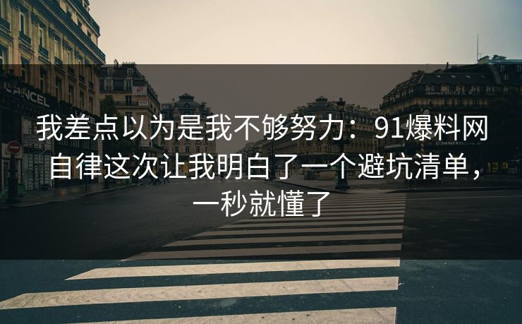 我差点以为是我不够努力:91爆料网自律这次让我明白了一个避坑清单,一秒就懂了