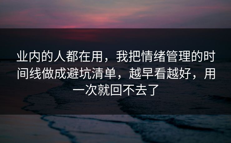 业内的人都在用,我把情绪管理的时间线做成避坑清单,越早看越好,用一次就回不去了
