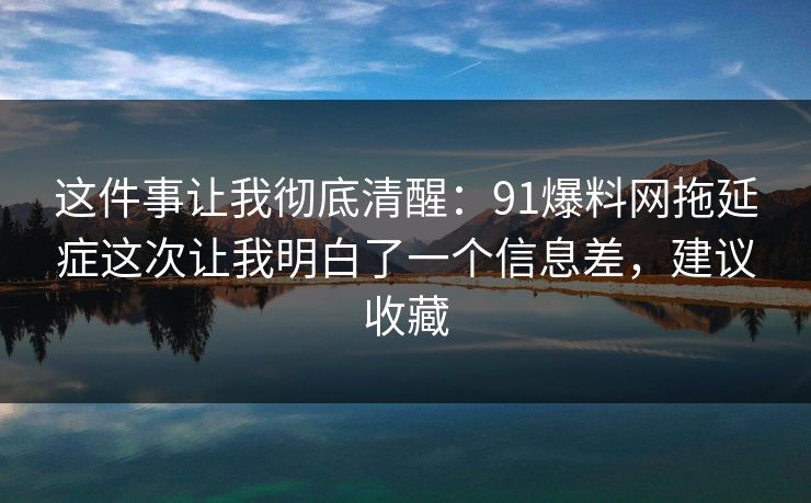 这件事让我彻底清醒:91爆料网拖延症这次让我明白了一个信息差,建议收藏