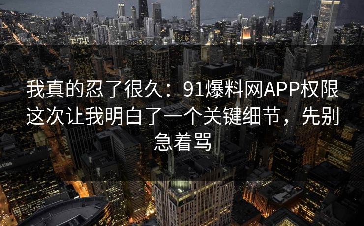 我真的忍了很久:91爆料网APP权限这次让我明白了一个关键细节,先别急着骂