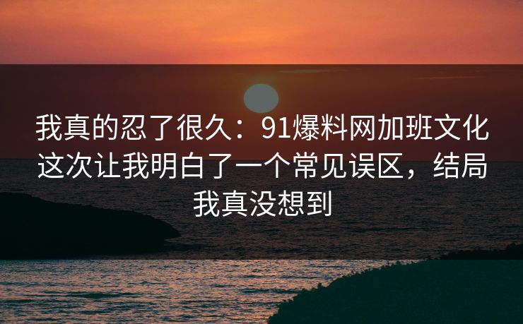我真的忍了很久:91爆料网加班文化这次让我明白了一个常见误区,结局我真没想到