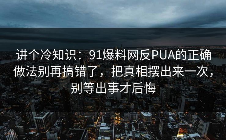 讲个冷知识:91爆料网反PUA的正确做法别再搞错了,把真相摆出来一次,别等出事才后悔