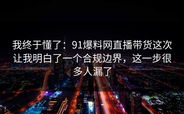 我终于懂了:91爆料网直播带货这次让我明白了一个合规边界,这一步很多人漏了